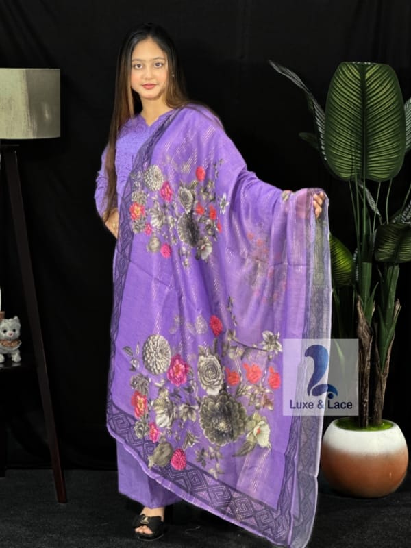 Celebrate Eid in timeless elegance with our Cotton Sadabahar Inspired Stitched Three Piece ✨