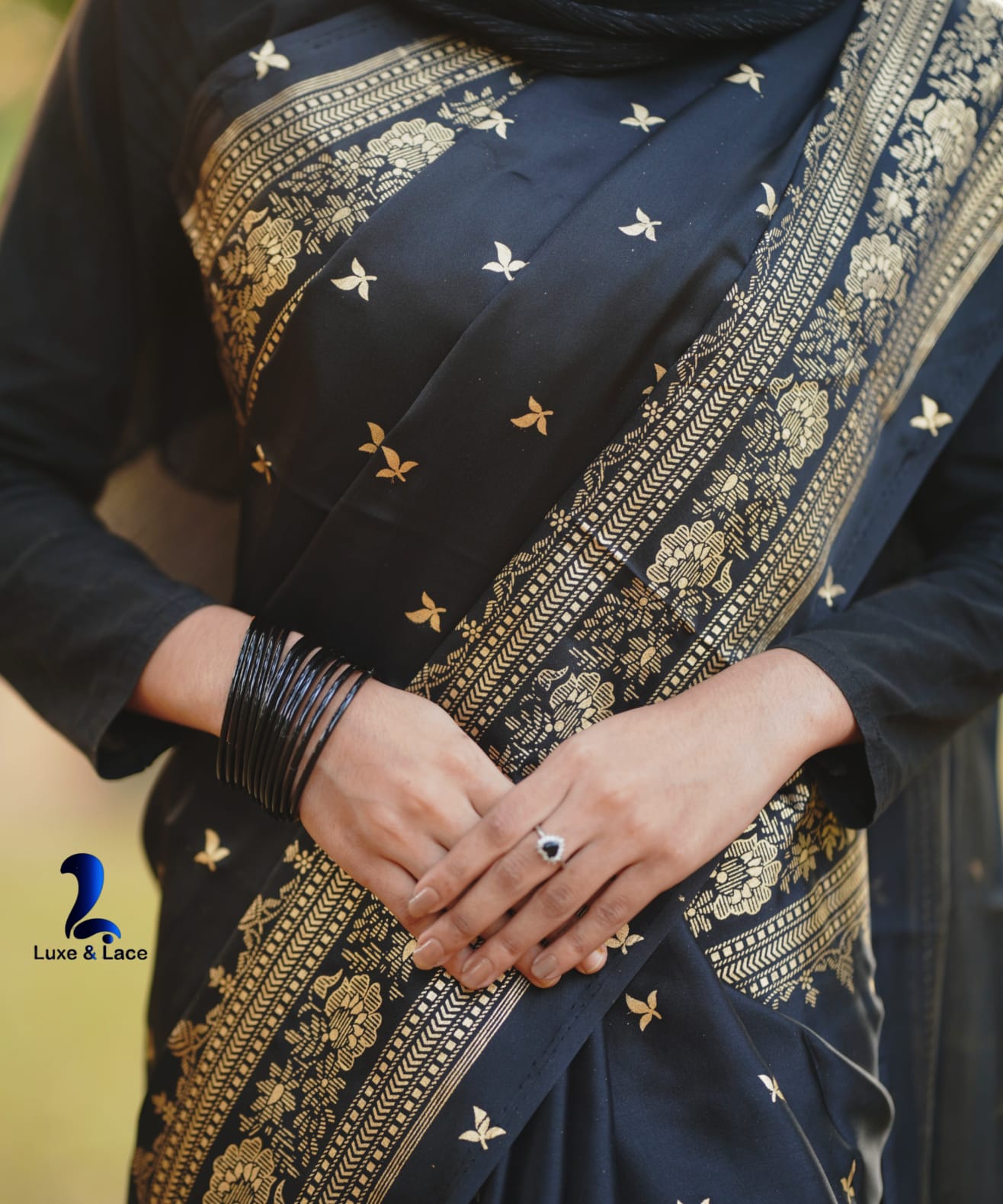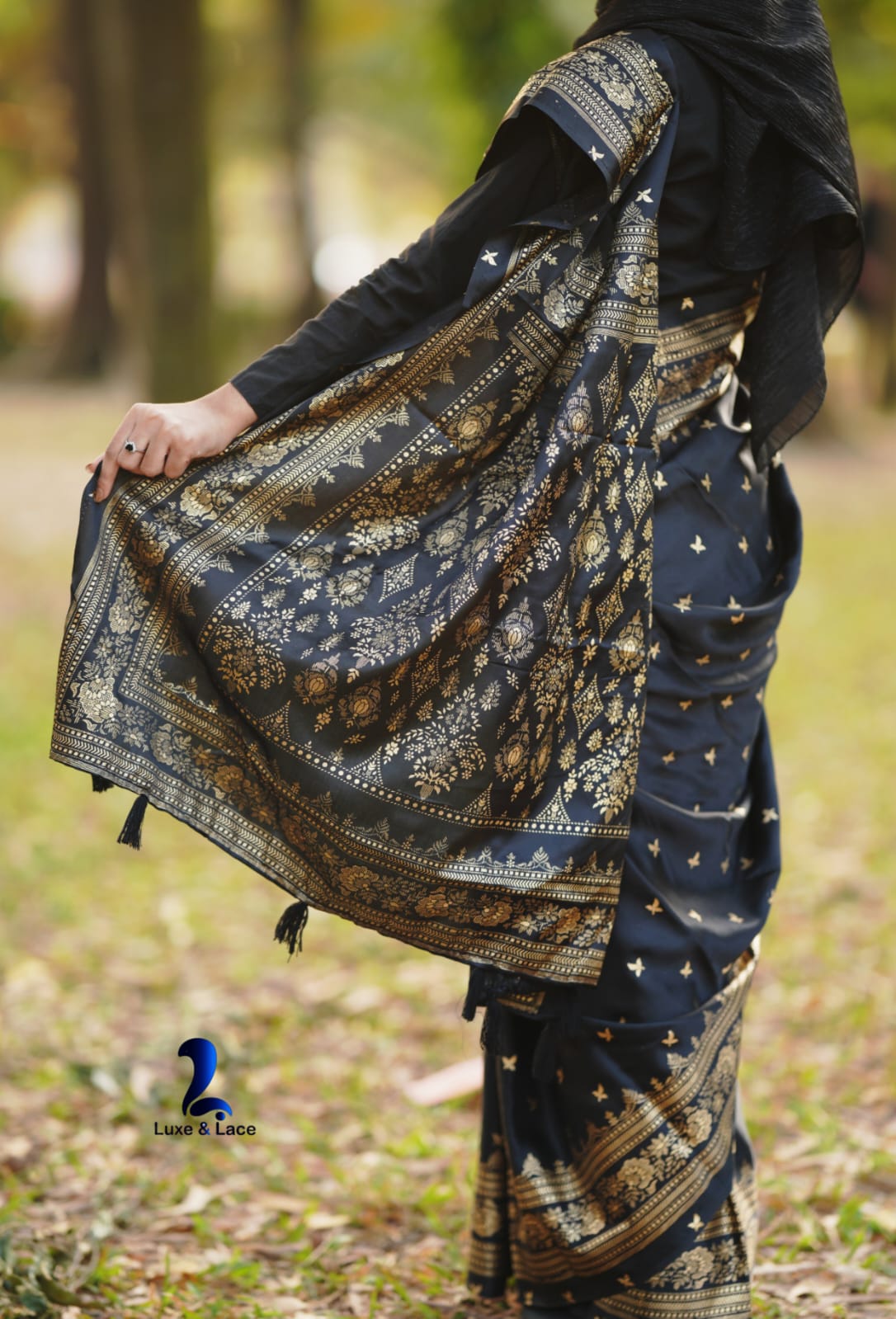 জাপান সিল্ক ফেব্রিকে তৈরি Luxe & Lace–এর এই রাজকীয় শাড়িতে আপনার প্রতিটি মুহূর্ত হোক অনন্য 🩷